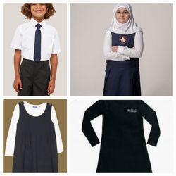 School Uniform - Boys: Navy Blue Pants & White shirt. Navy blue sweater. Girls: Navy blue shirt or abaya & White Scarf Navy Blue Sweater